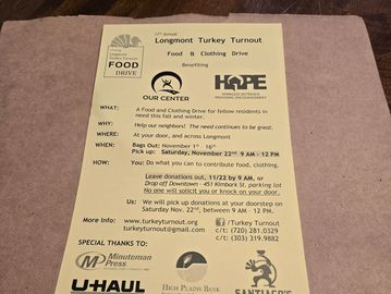 A critical part of the Turkey Turnout - getting 5,000+ bags out to residences all over town. Go door to door, dropping off bags (no knocking).